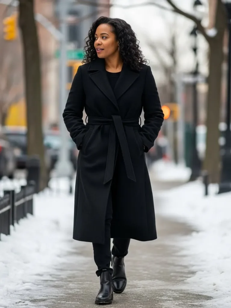 Some people love bold colors in winter, but I keep coming back to black coats because they make layering feel effortless and chic.