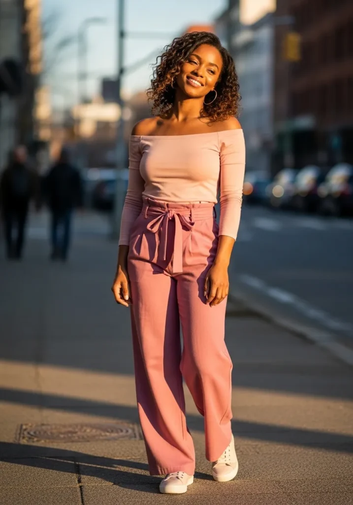 I love outfits like this because they let me dance without feeling restricted. The off shoulder detail adds a little flirtiness while the loose pants keep everything comfortable. It feels cute, confident, and easy to move in all night.
