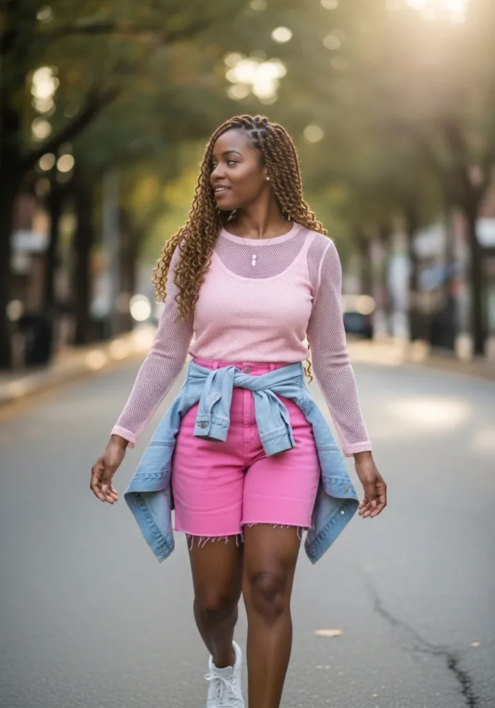 I love outfits like this when I know I will be dancing nonstop. The shorts give me freedom and the pink keeps it fun. It feels confident and carefree which is exactly what I want at a concert.