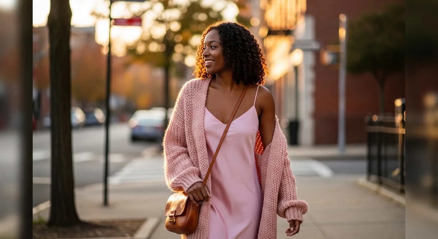 • Soft Pink Slip Dress With Cozy Cardigan