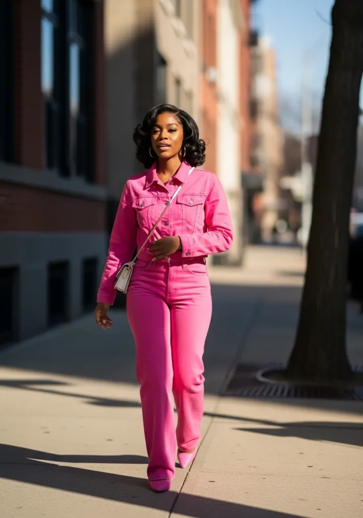 I love pink suits with heels because they feel elevated instantly. It is bold but still classy. This is a look I always associate with modern Barbie energy.