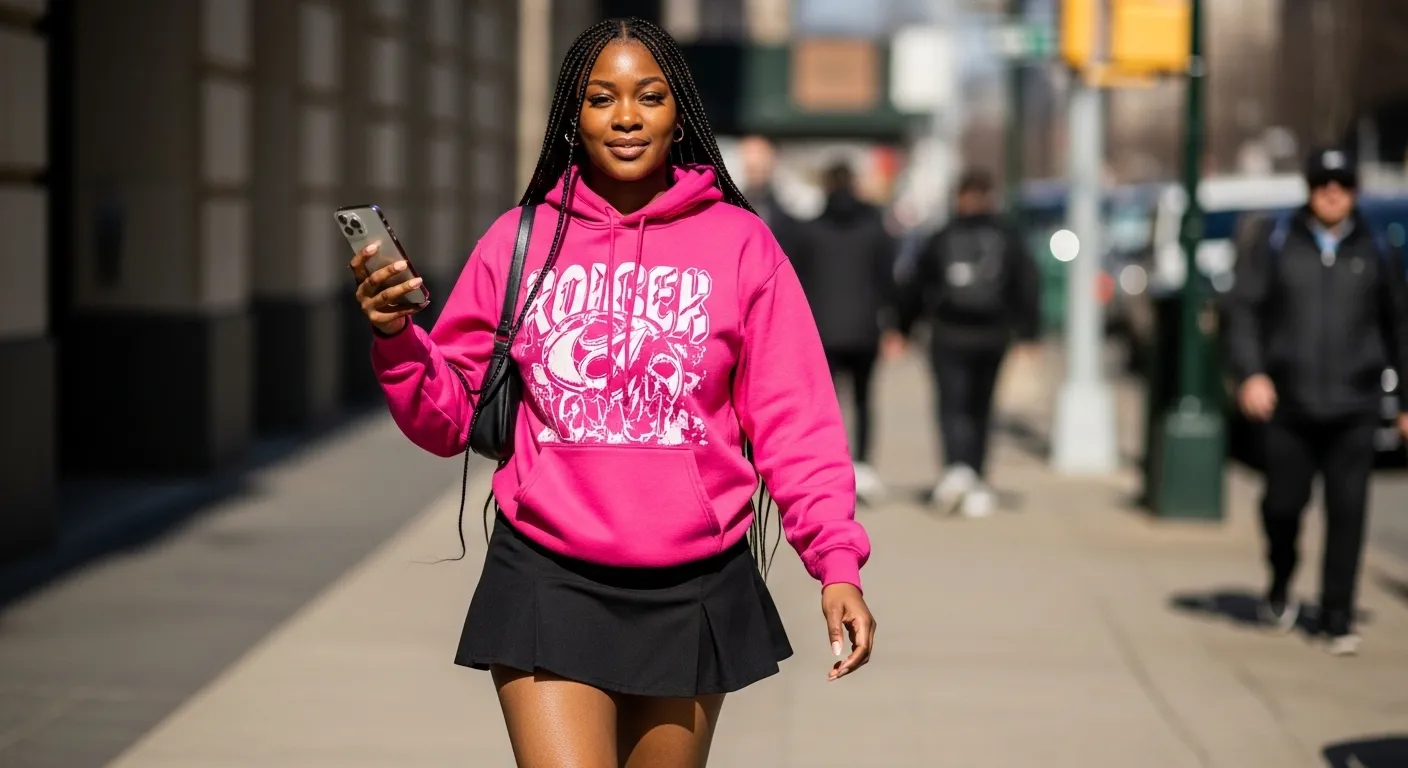 I love mixing graphics with feminine pieces like this. It feels fun without looking messy. This outfit perfectly captures playful Barbie style right now.