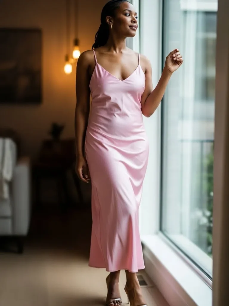 I am always drawn to outfits like this because they feel powerful in their simplicity. The pink shade looks amazing against deeper skin tones and gives off such a confident glow. It is the kind of dress that makes standing still feel just as good as walking into a room.